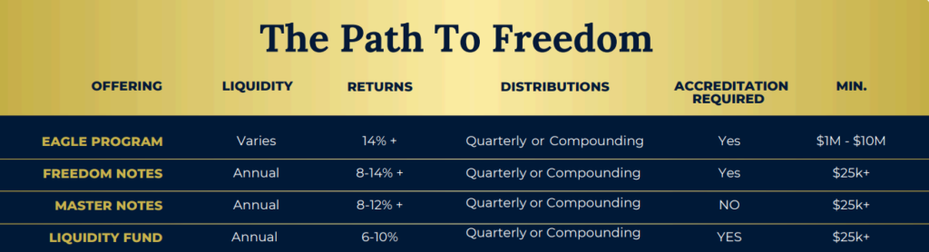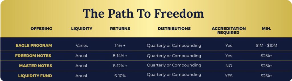 Freedom Family Investments is committed to providing exceptional real estate investment opportunities that enhance communities and secure our investors’ financial futures. We focus on asset classes known for stability, income generation, and long-term growth potential.