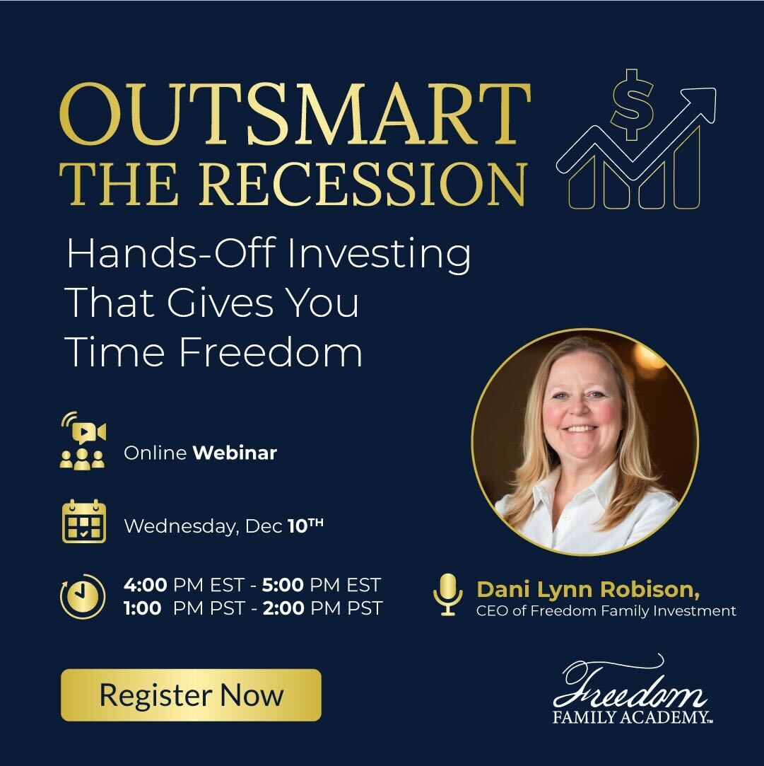 Join Dani Lynn Robison, CEO of Freedom Family Investments, for a powerful, data-backed session designed to help you invest confidently, even during economic volatility.